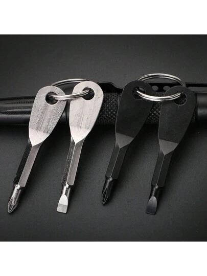 2 piezas de herramientas multifuncionales de bolsillo para exteriores con destornilladores Phillips y planos, accesorio de llavero, útiles para preparar la configuración de campamento - Negro - Añade 1