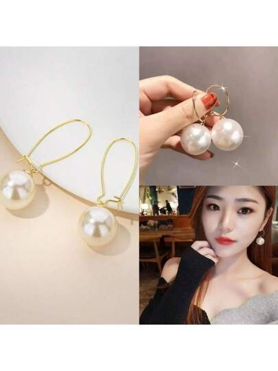 Set de 2 / 4 pares de pendientes aro con perlas falsas, versátiles y elegantes para uso diario, citas, vacaciones, ir y venir, apropiados para mujeres - Dorado - Añade 6
