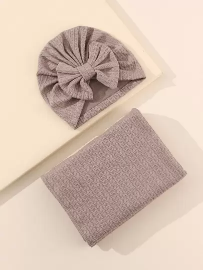 2 piezas unicolor Manta para envolver bebé & Sombrero turbante - Café integral - Añade 2