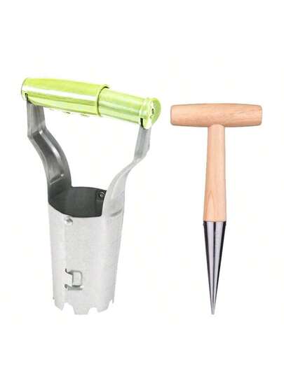 2 piezas Transplantador de acero inoxidable para jardinería, juego de herramientas de excavación para plantas, flores y semilleros - Multicolor - Añade 7