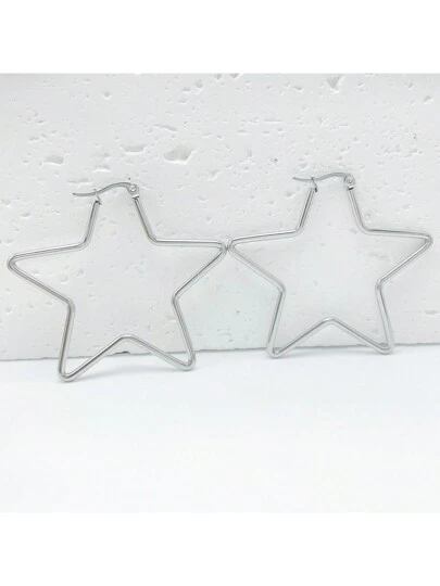 2 piezas Pendientes de aro geométricos de acero inoxidable con diseños de estrellas, corazones y círculos en varios colores y estilos - Plateado - Añade 2