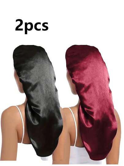 Set de 2 gorros, gorros de seda para dormir, gorros de satén para el cabello largo de mujer, aptos para uso diario. - Multicolor - Añade 2