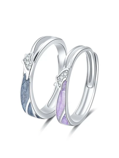 2 piezas/set Anillo de boda de plata con decoración de circonita cúbica - Multicolor - Añade 2