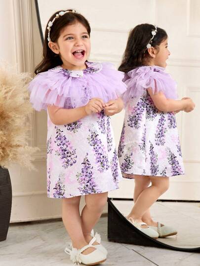 SHEIN Set de 2 vestidos para bebé niña con cuello de volantes minimalista elegante y lindo, sin mangas - Azul - Añade 6