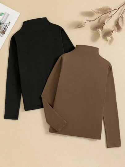 SHEIN Set de 2 camisetas de manga larga de punto básicas de estilo informal para niña preadolescente - Multicolor - Añade 1