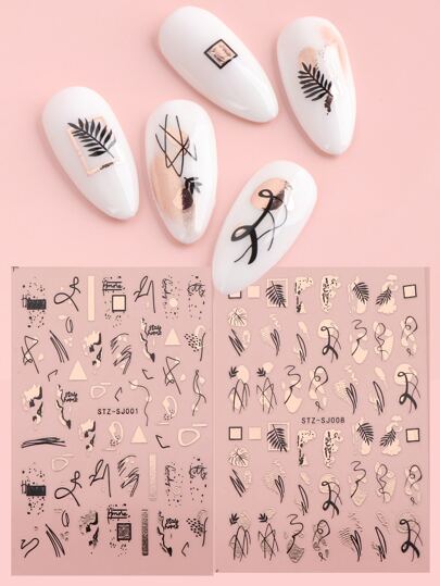 2 hojas de pegatinas de arte abstracto para decoración de uñas, suministros para uñas DIY - Multicolor - Añade 4