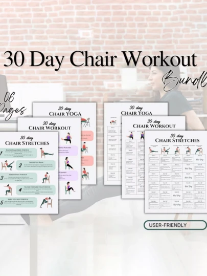 3/6 Plan de entrenamiento de yoga y fitness creativo - Paquete de ejercicios de 30 días en silla - Multicolor - Añade 8
