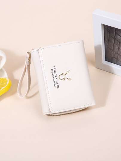 Billetera plegable de moda con múltiples compartimentos y cadena para mujer - cartera pequeña - Blanco - Añade 1