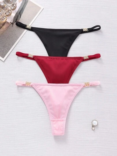SHEIN paquete de 3 bragas tipo tanga de unicolor simple con detalle metálico para mujer - Multicolor - Añade 1