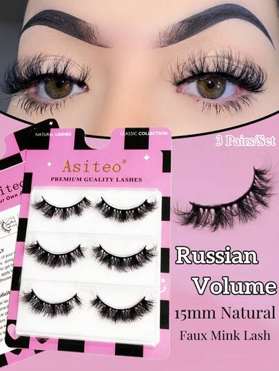Asiteo 3 pares de pestañas esponjosas reutilizables, cortas y naturales, pestañas postizas de larga duración con volumen dramático, extensión de pestañas gruesas y largas - Negro - Añade 3