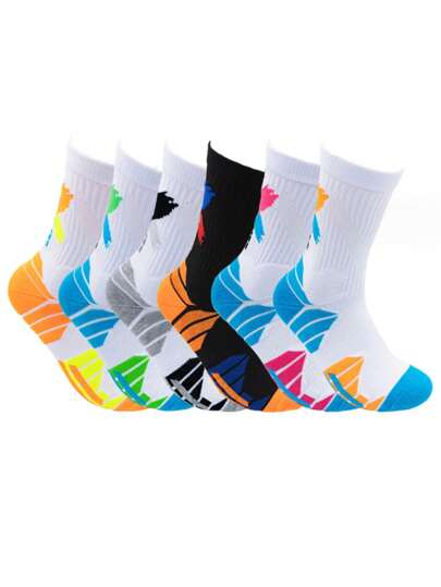 3 pares (colores aleatorios) de calcetines de baloncesto profesionales para hombre con suela de rizo de color contrastante acolchada, calcetines deportivos que absorben los golpes - Multicolor - Añade 6