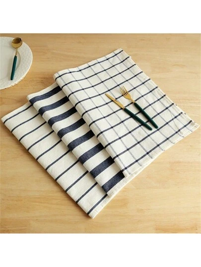 Juego de 3 toallas de cocina de tela con estilo mediterráneo en color azul, toalla de té, mantel para fondo de comida - Multicolor - Añade 12