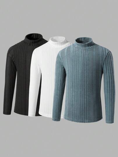 3 Piezas Camisetas de manga larga con cuello alto y textura lisa para niños preadolescentes - Neblina azul - Añade 1