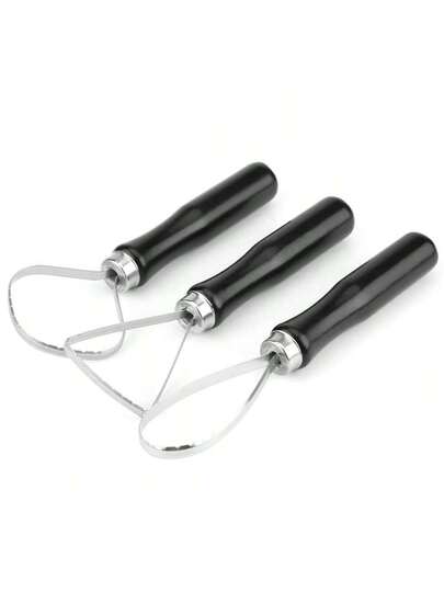3 Pcs/Set Wood Pottery Clay Sculpture Big Loop Tool With Steel Flat Wire - Plateado - Añade 1