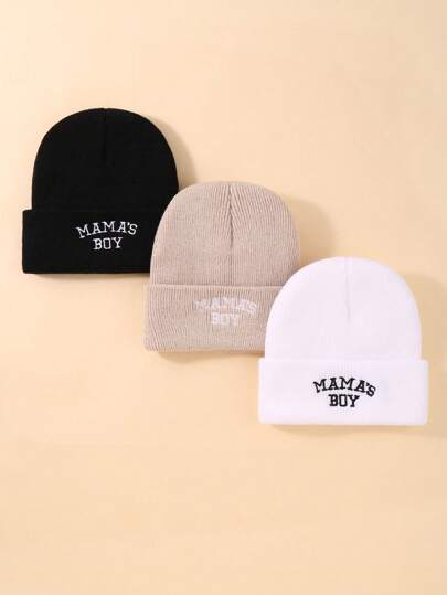 Conjunto de 3 gorros de punto de unicolor para niños, adecuado para mantener el calor en invierno, gorro de invierno para bebé - Multicolor - Añade 3