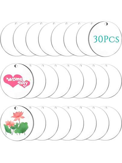 30 piezas de círculos pequeños claros de 2 pulgadas de acrílico en blanco de 2.5 mm de grosor con agujeros para hacer mini joyería colgante, llaveros, etiquetas, manualidades DIY - Blanco transparente - Añade 1