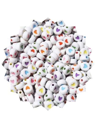 300 Beads Heart Star Round Bead Jewelry Crafts - Corazón blanco y coloreado - Añade 1