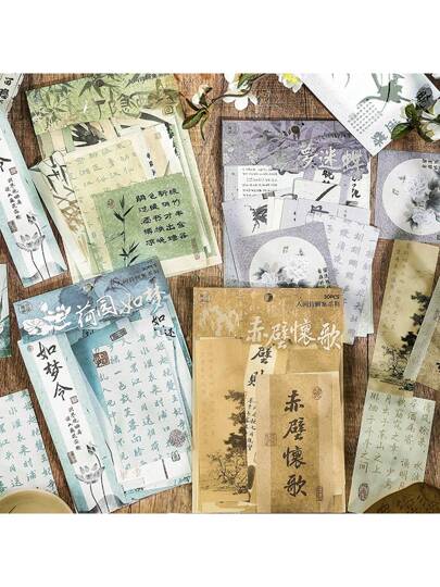 30 piezas de papel de arte vintage con texto caligráfico poético, papel de fondo para manualidades DIY - Multicolor - Añade 5