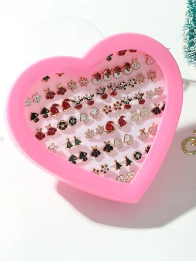 36 Par/set De Pendientes Navideños En Forma De Corazón (combinación Aleatoria) - Multicolor - Añade 1