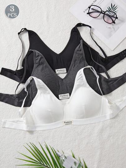 Set de 3 sujetadores inalámbricos cómodos y suaves de unicolor, ropa interior para mujer - Multicolor - Añade 3