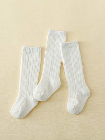 Bebé 3 pares Calcetines altos unicolor casual para diariamente - Blanco - Añade 2