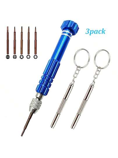 Set de 3 piezas de kit de reparación de gafas, destornillador multifuncional 5 en 1 (Torx T6, T5, 1.5, -2.0, Estrella 0.8) y juego de mini destornillador llavero 3 en 1, apto para teléfonos inteligentes, gafas, electrónica, relojes, computadoras portátiles, joyas - Multicolor - Añade 1