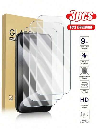 3 piezas de protector de pantalla de vidrio templado de alta definición, pantalla Retina 1:1, resistente a arañazos, a prueba de roturas, compatible con las series Apple X/XR/11/12/13/14/15/16/16 Plus/16 Pro/16 Pro Max/16e/17/17 Air/17 Pro/17 Pro Max. Accesorios esenciales para protección de pantalla, aplicables para uso diario, oficina y hogar. Protector de pantalla de teléfono a prueba de agua, a prueba de golpes y resistente a arañazos. - 3 piezas - Transparente - Añade 9