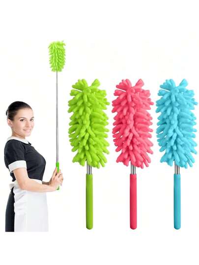 3 piezas Plumero de microfibra con mango extensible, mini plumeros reutilizables para limpiar automóviles, ventanas, muebles, oficina, disponible en múltiples colores - Multicolor - Añade 1