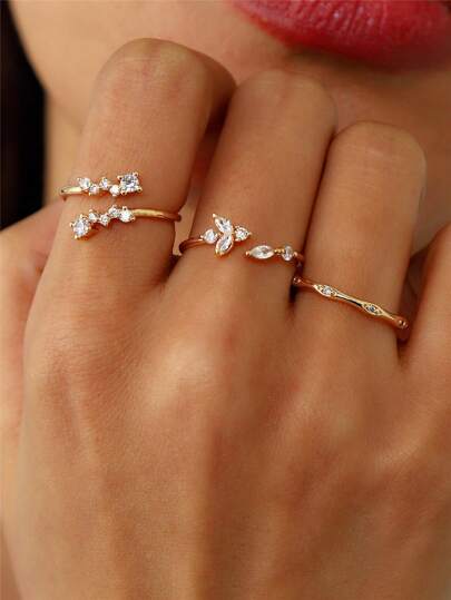 3 piezas Anillos de circonita geométricos minimalistas, regalo diario y de fiesta para mujeres - Amarillo Oro - Añade 1