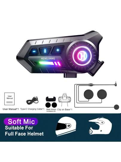 3 piezas Auriculares Bluetooth 6.0 para casco de motocicleta, diseño de luz de 3 colores, resistente al agua IPX6, compatible con la conexión simultánea de dos teléfonos - Micrófono suave - Añade 1