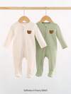 Set de 2 pijamas con pies de manga larga, suaves y cómodos, con estampado floral diminuto para recién nacidos