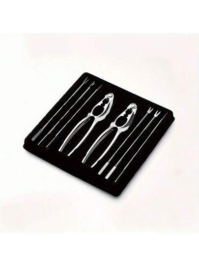 Set de 3 piezas de herramientas de mariscos, tenazas de patas de cangrejo, selecciones de acero inoxidable, ganchos para frutos secos, tenazas para langosta, tenazas para mariscos, accesorios de cocina, Set de utensilios de cocina - Plateado - Añade 8