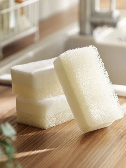 Set de 3 esponjas de limpieza de cocina, esponja multiusos para lavar platos, súper absorbente, antioxidante y quitagrasas, con diseño de mango de 3 capas, adecuado para limpiar platos, utensilios de cocina y muebles - Blanco - Añade 2