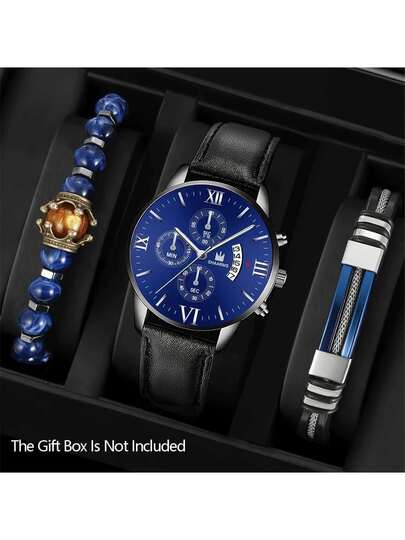 Set de 3 piezas: Reloj de cuarzo de estilo deportivo casual para hombre + Pulsera - Negro - Añade 1