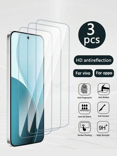 3 piezas Protector de pantalla de vidrio templado Ultra HD, compatible con teléfonos OPPO/VIVO, resistente al agua, anti-arañazos, sin burbujas, fácil instalación como regalo de cumpleaños, familia, amigos, accesorios para teléfonos - transparente - Añade 3
