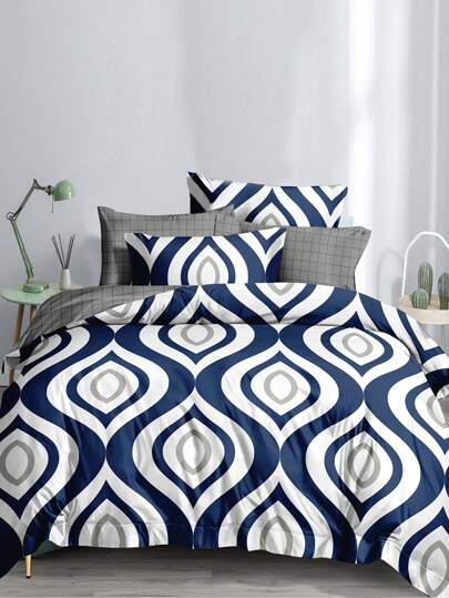3 piezas/set con patrón geométrico Set colcha sin 1 Colcha & 2 de tela Textiles para dormitorio para casa - Multicolor - Añade 4