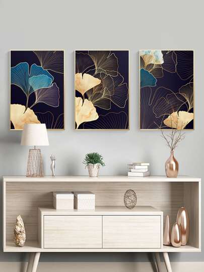 3 piezas/set pintura Ginkgo Biloba patrón sin marco, fibra química moderna imagen sin marco para el hogar - Multicolor - Añade 1