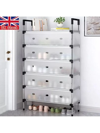 NetHong 4/5/6/7 Tier Cabinet Storage Organiser Shoe Rack Stand Holder W Dust-Proof Cover,Doorway Simple Shoe Rack,Space Saving Storage Rack,Hallway Aisle Entryway Storage Shoe Cabinet,Easy Installation - Negro - Añade 1