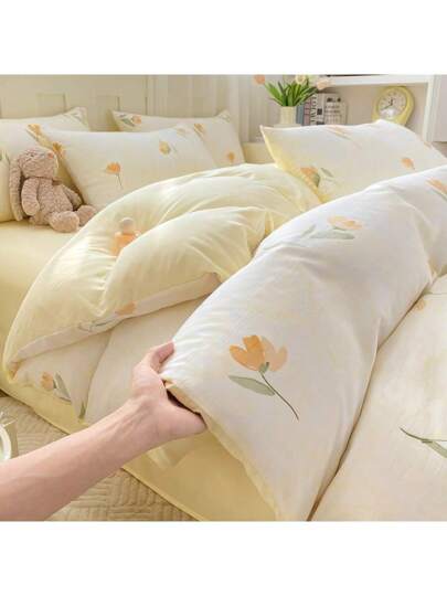 Juego de ropa de cama floral de 4 piezas: incluye funda nórdica suave y cómoda de poliéster, sábana plana, 2 fundas de almohada a juego con estampado, transpirable y lavable a máquina, adecuado para todas las estaciones (excluye edredón y almohadas) - Multicolor - Añade 1