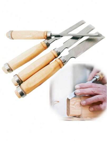 Juego de 4 piezas, Cincel para carpintería, Herramienta especial para carpintería con mango de madera, Mango de madera sólida de acero 50, Cincel de talla para afilar cinceles planos - Plateado - Añade 11