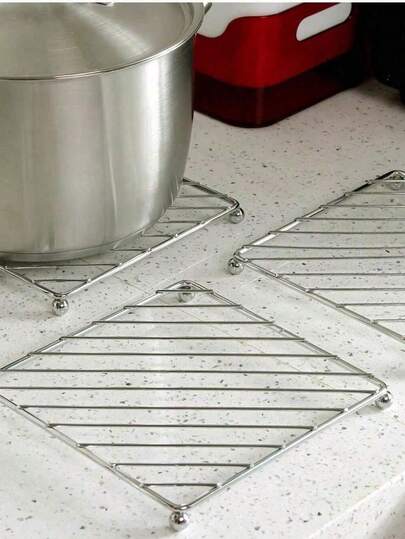 4 soportes de acero inoxidable de cuatro patas, almohadillas de mesa de cocina resistentes al calor, posavasos, almohadillas de aislamiento de calor de acero inoxidable, protección antescaldaduras de escritorio, adecuado para restaurante, cocina, hornear - Multicolor - Añade 1