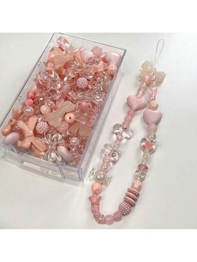 40g Kit de cuentas de acrílico mixtas para manualidades de joyería DIY, adecuado para hacer pulseras, collares, con una variedad de formas y colores disponibles - Rosa Pálido - Añade 1