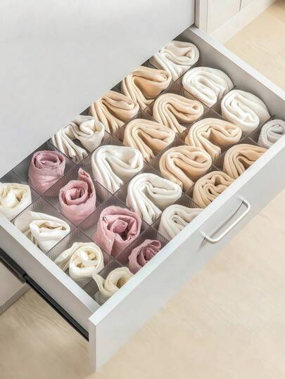 4 piezas de divisores de cajón de plástico transparente ajustables para organizar maquillaje, ropa interior, calcetines, decoración de otoño para el hogar, oficina, dormitorio, DIY, organizador de armario y separador de armario - transparente - Añade 1