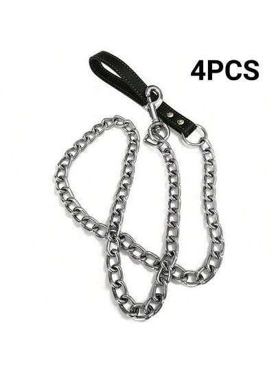 4PCS Heavy Duty Metal Chain Dog Lead With Handle Long Strong Control Leash 0.2*120cm - Negro - Añade 10
