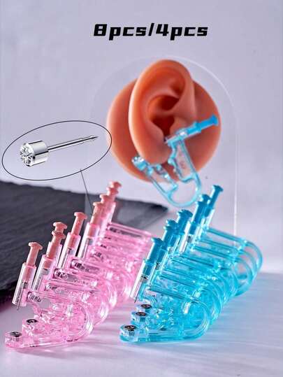 Set de 4 piezas/8 piezas Pistola esterilizada desechable de baja molestia para perforar orejas, con aretes de blanco incorporados, fácil de usar, apto para uso personal/Herramientas y accesorios para la belleza de las orejas - Multicolor - Añade 8