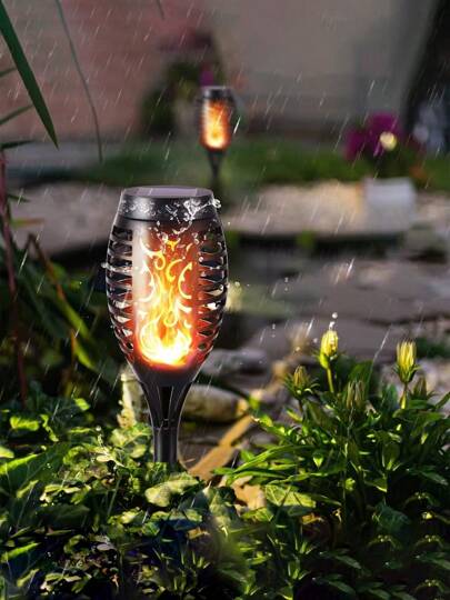 4 piezas/8 piezas Luces solares de llama, 12 luces de jardín y paisaje LED, resistentes al agua IP65, sensor de encendido automático con energía solar - Negro - Añade 1