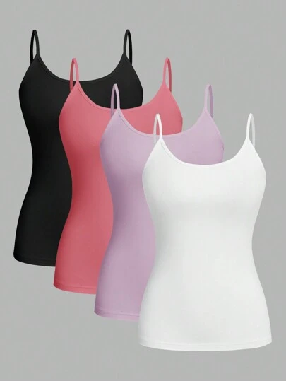 SHEIN EZwear 4 piezas Camiseta de tirantes finos y ajustada de estilo casual y simple para mujer en verano - Multicolor - Añade 3