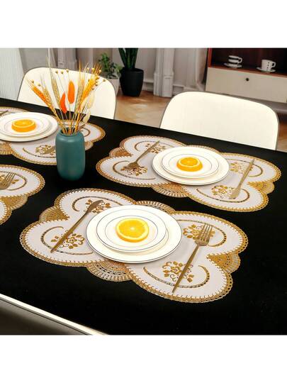 4 Uds. Esteras De Mesa Impermeables De Pvc Estampadas En Caliente, Almohadillas Rectangulares Para Mesa De Comedor Con Aislamiento Térmico - C - Añade 6