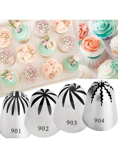 4 piezas Juego grande de boquillas para decorar pasteles - #901, #902, #903, #904, boquillas de tuberías para decorar pasteles, accesorios de repostería - Conjunto de decoración - Añade 1