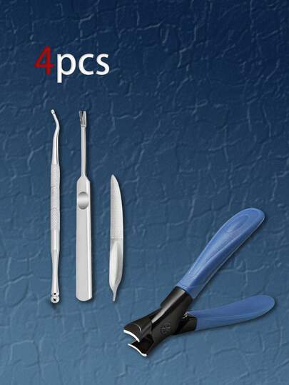 Set de 4 cortaúñas de acero inoxidable gruesos, diseño a prueba de salpicaduras, mangos cómodos antideslizantes, herramientas portátiles de cuidado para viajes - Azul - Añade 3